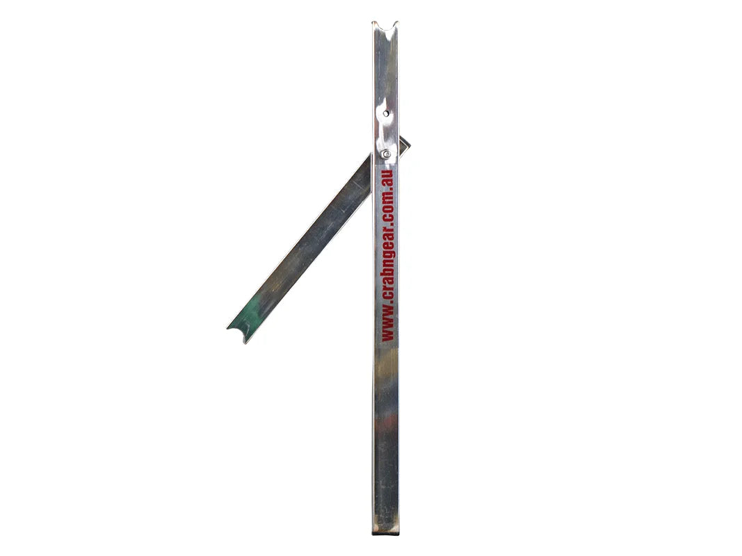 Good quality pots are reasonably tightly strung. This keeps the funnels and most importantly the entrances tight so that the pot not only catches crabs, but holds them as well. As a result the pot legs need to only ‘just’ fit between the two rings. Our pot spreader is a simple two piece apparatus made from stainless steel that allows you to use leverage to make spreading the pot wide enough to insert the legs childs play. Simply stand the pot up on its end with the top of the pot closest to you, put the U shaped end of the shorter handle on the top ring (ring closest to you) and the U shaped end of the longer handle on the bottom ring. The end of the longer handle will be on an angle. By pulling it down you will stretch the rings apart from each other. When it is wide enough using your other hand swing the top of the leg into place and release the pressure on the handle! And you’re done! Note there is a bolt through the centre of the handles that can be moved between the two pre-drilled holes that allows you to change the length of the handles to suit different pot leg lengths. Once you’re ready to pull you pot down, put the pot the other way around with the top of the pot away from you to make the legs easier to fold down.