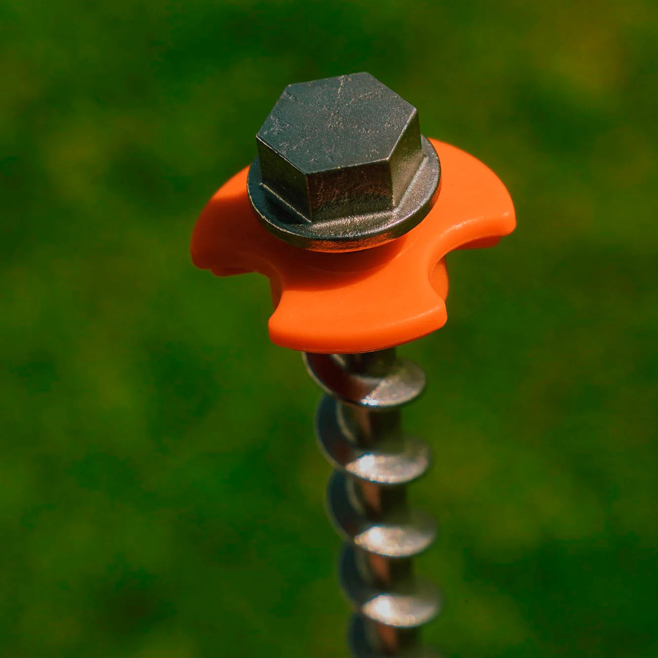 The Ground Dog screw in pegs have a 19mm hex head, which makes screwing in the pegs easy and fast! The 19mm head fits both the Ground Dog Screw in Pegs®, and the stabilizer legs - this means you only need to carry one size drill socket!
