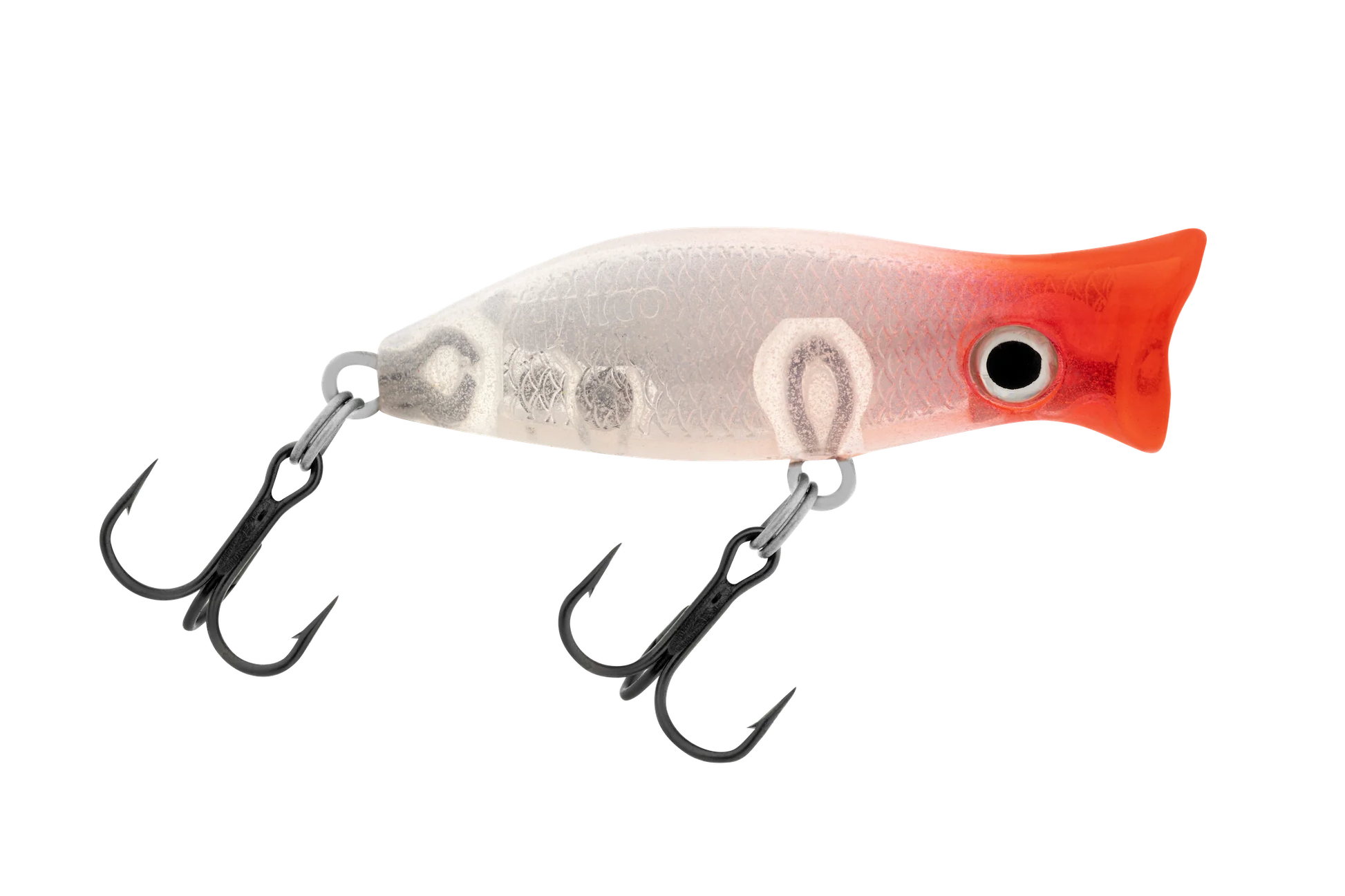 The Roosta Popper 45 is designed to be used for straight retrieve popping and blooping. The low splash, high bubble retrieve is useful for fish that are shy of large splashes.