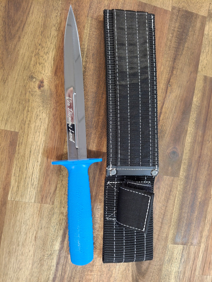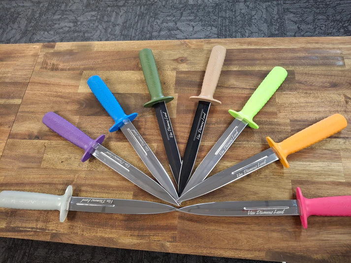 Unleash the potential of the Van Diemen 8inch Pig Sticker Knife with Sheath as your go-to tool for hunting adventures. Its 20cm double-sided blade offers versatility and precision, making it a reliable companion in the wild. The bright colour ensures you won't misplace it in dense scrub, while the high-quality stainless steel blade promises durability. The easy non-slip grip handle provides comfort during extended use, and the heavy-duty nylon web belt sheath accommodates belts up to 58mm wide, ensuring secure and accessible storage.